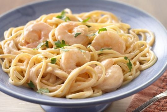 Pasta con camarones y salsa cremosa