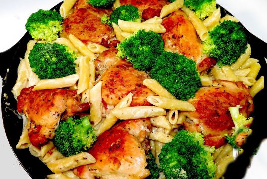 Pasta alfredo con pollo y brócoli